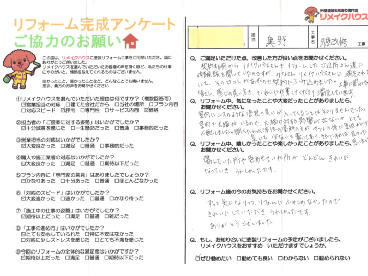 ご近所様の口コミも参考に、リメイクハウスに工事を任せて頂き誠にありがとうございました。