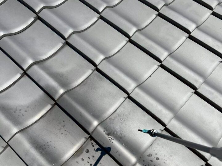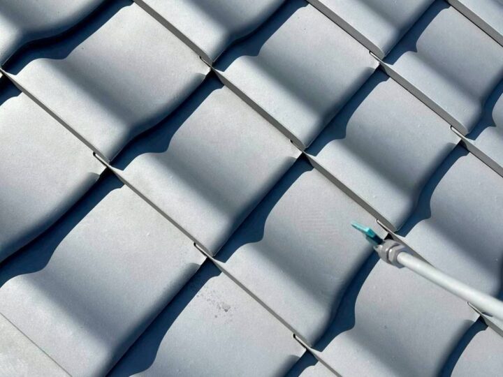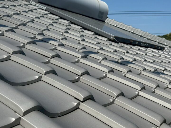 日本瓦専用塗材(いぶしコート)を2回、吹き付けていきます屋根塗装