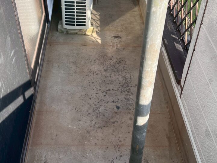 表面を研磨(下地調整)後、FRP樹脂を敷きます。ベランダ防水(FRP再防水)