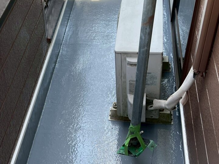 専用のトップコートを2回塗布しますベランダ防水(FRP再防水)