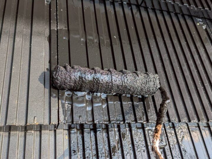 下塗りをすることで、後から塗る上塗り塗料が吸収されるのを抑えます。屋根塗装