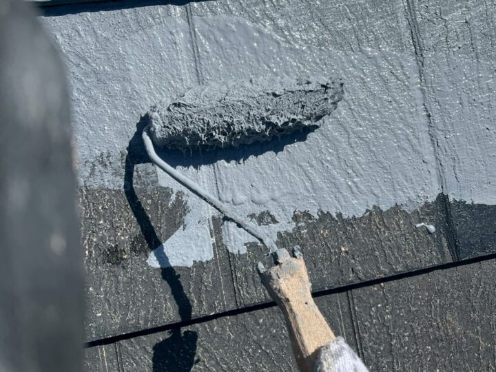 下塗りをすることで、後から塗る上塗り塗料が吸収されるのを抑えます。屋根塗装