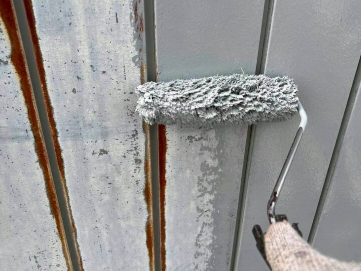 今回は錆止めを使用しました。外壁塗装(トタン部・ガルバ部)