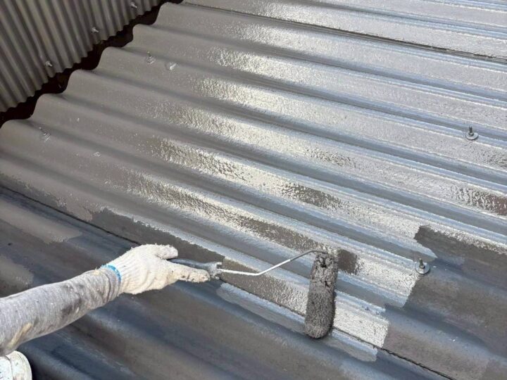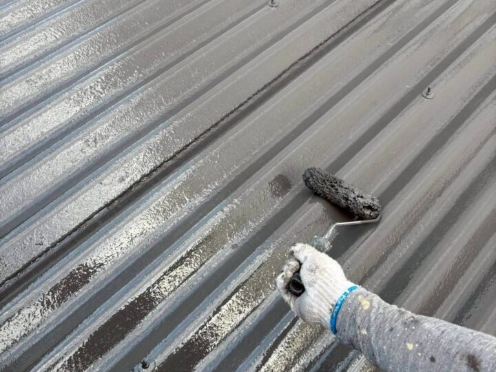 今回は錆止めを使用しました。屋根塗装(倉庫)