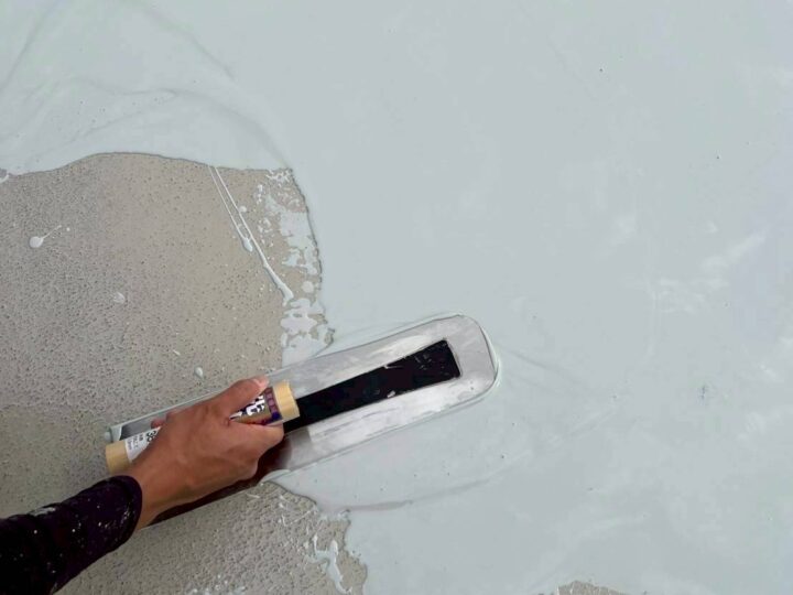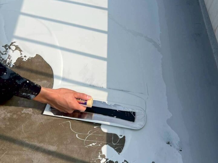 ウレタン防水材を2回流し込みます。屋上防水(ウレタン密着)