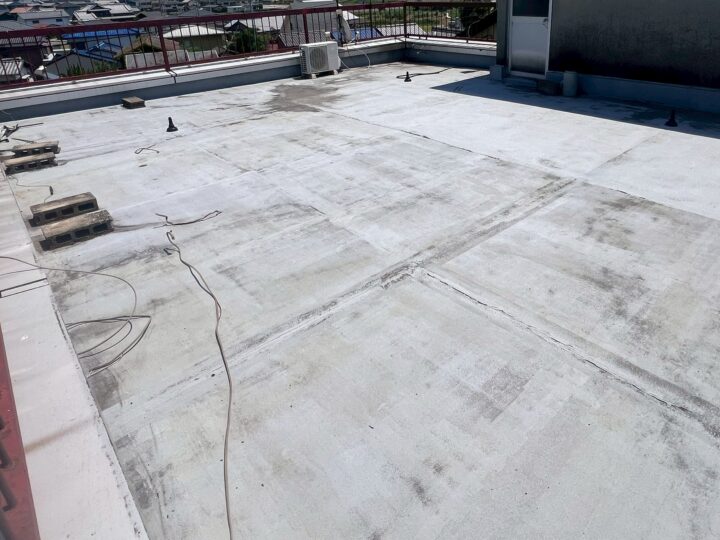 ノロ引き(セメント等)処理を行います。屋上防水(ウレタン密着)