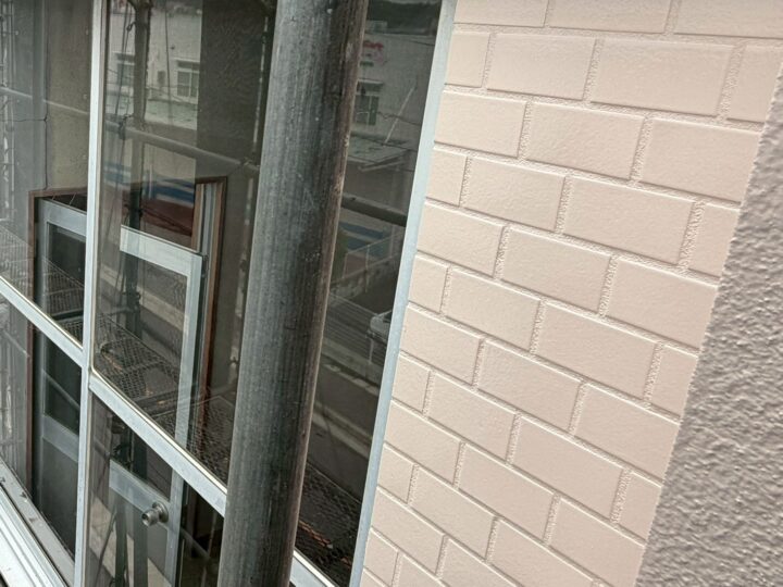 中塗り塗料と同じ色を塗っていきます。外壁塗装(メイン部・タイル部)