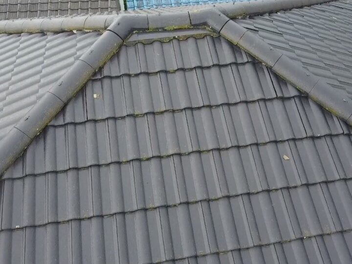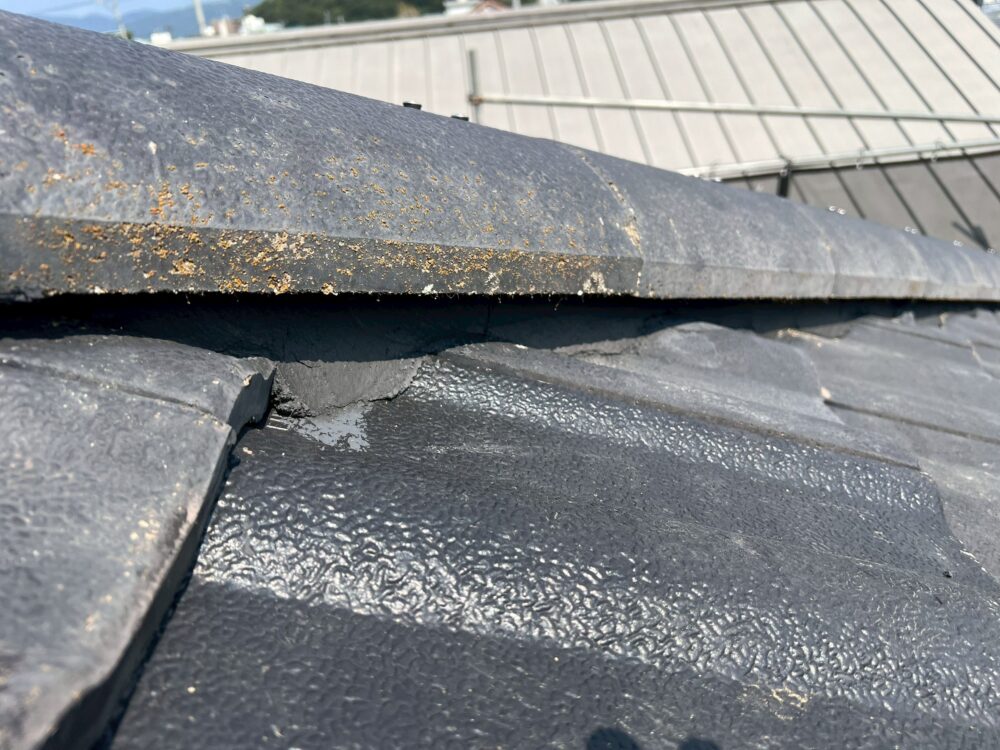 中塗り塗料と同じ色を塗っていきます。屋根塗装