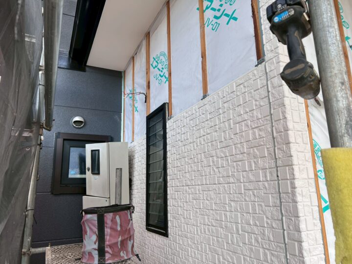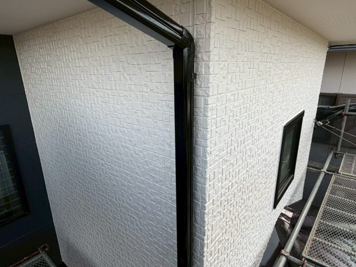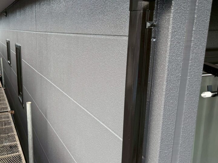 中塗り塗料と同じ色を塗っていきます。外壁塗装