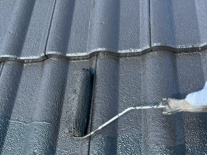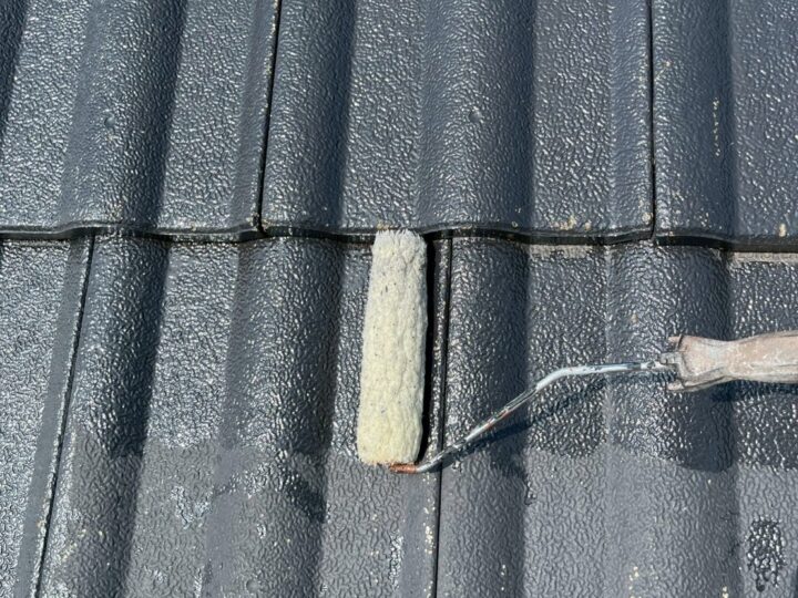 下塗りをすることで、後から塗る上塗り塗料が吸収されるのを抑えます。屋根塗装