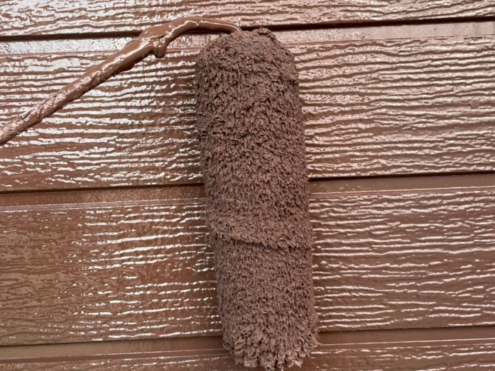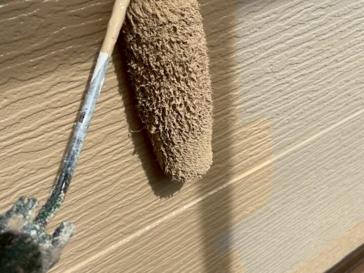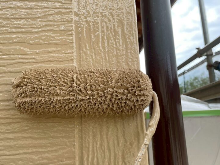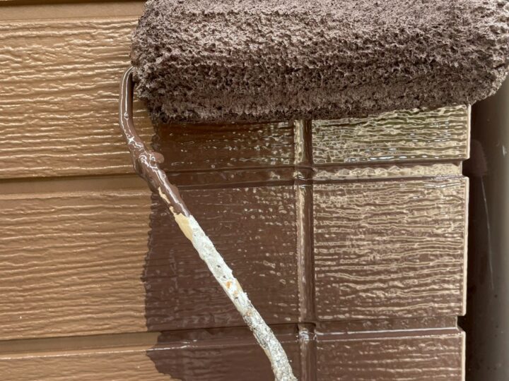 中塗り塗料と同じ色を塗っていきます。外壁塗装