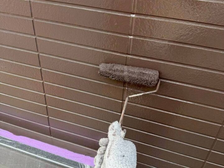 上塗り材の塗膜を保護するインテグラルコートを塗っていきます。