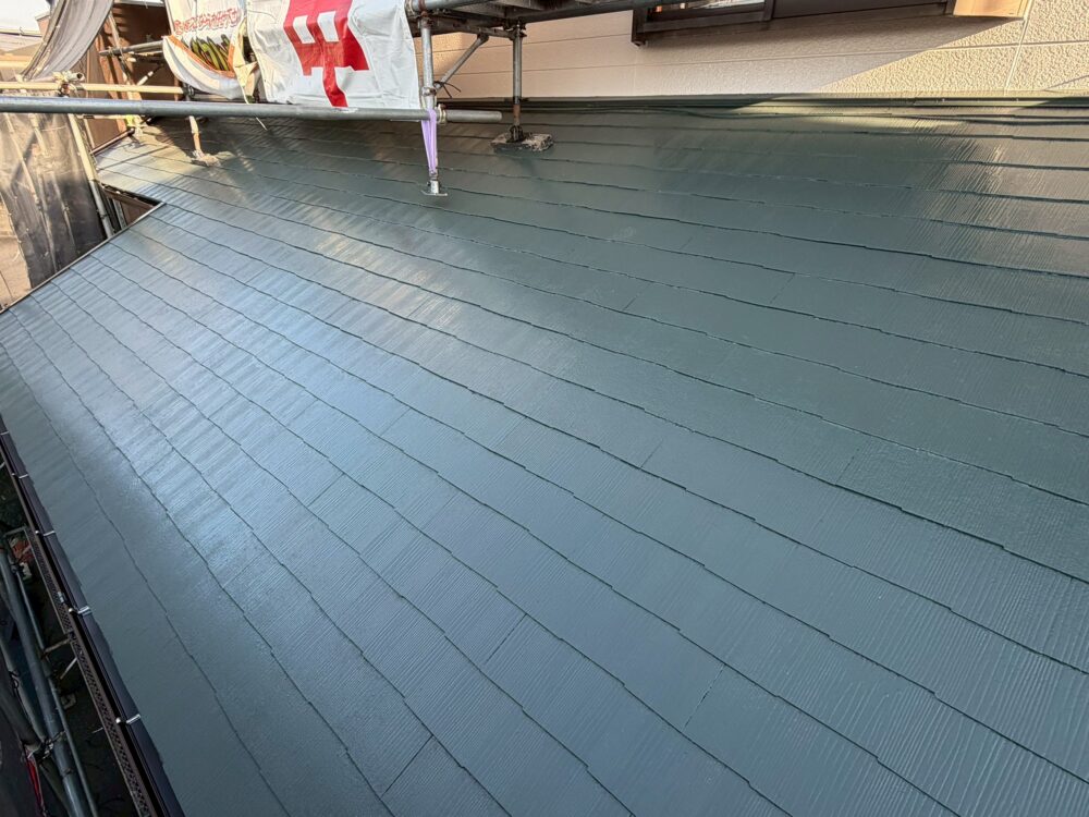 屋根使用塗料グランセラベスト(色:ボローニャグリーン)