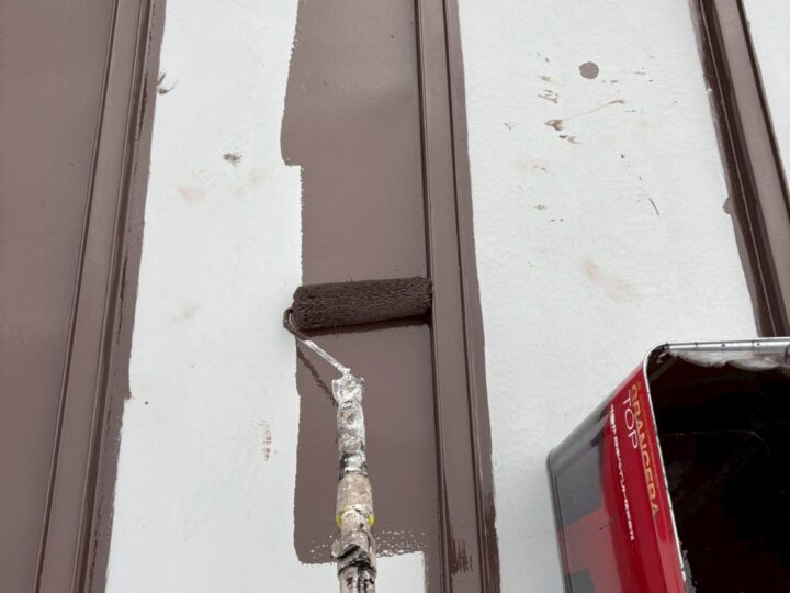 上塗り材の塗膜を保護するインテグラルコートを塗っていきます。