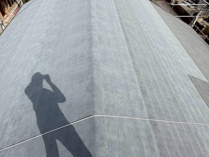 既存の屋根材の上に防水シートを貼ります