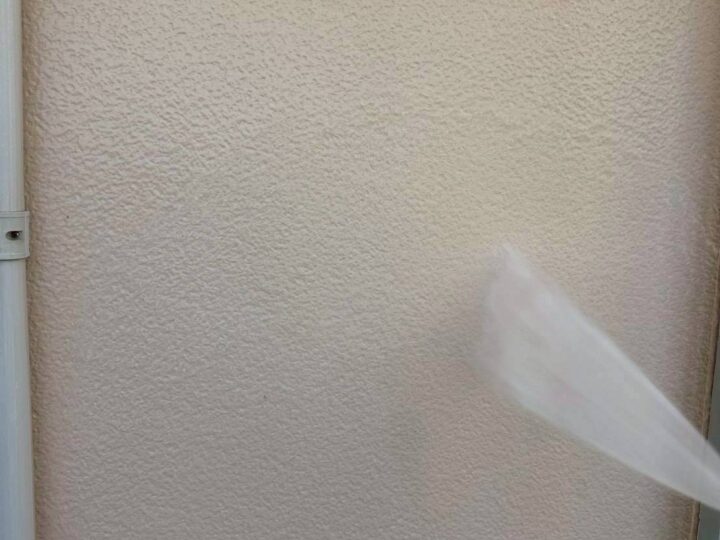 塗料の密着性が良くなるように、付着しているコケや藻・劣化した塗料などの汚れを落とします。