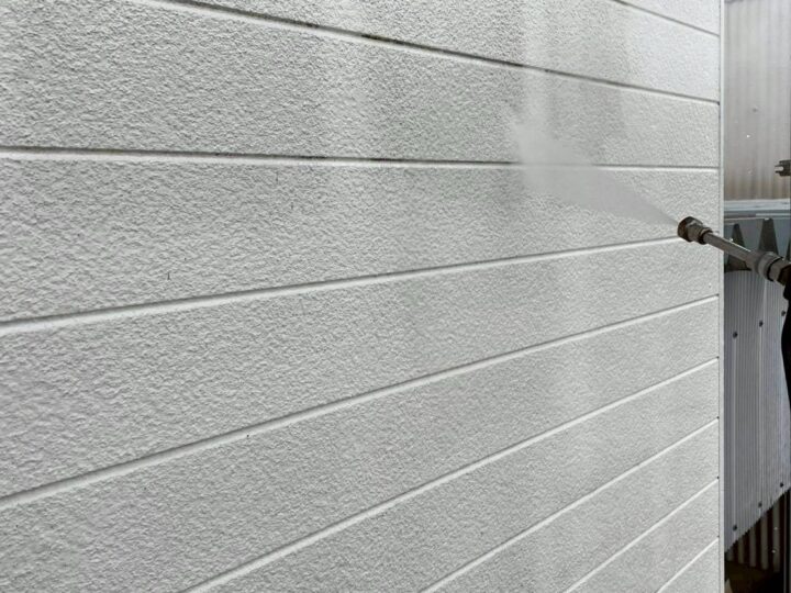 塗料の密着性が良くなるように、付着しているコケや藻・劣化した塗料などの汚れを落とします。